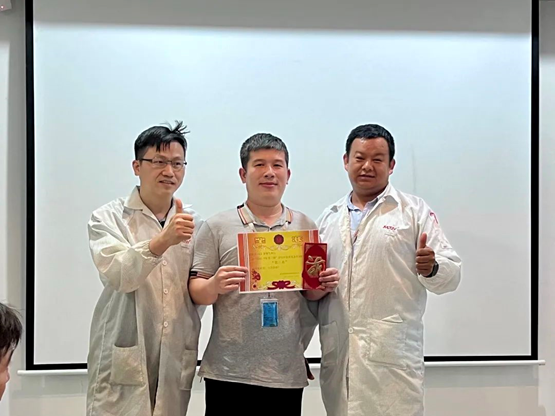 會議開始后,主持人首先介紹會議內(nèi)容,并帶領(lǐng)大家對第一階段TPM開展的活動及TWI結(jié)果進(jìn)行了精彩回顧。隨后進(jìn)入到激動人心的頒獎環(huán)節(jié),華南工廠領(lǐng)導(dǎo)為3個優(yōu)秀團(tuán)隊(duì)進(jìn)行了頒獎以及與TWI優(yōu)質(zhì)的培訓(xùn)文檔成員合影。
