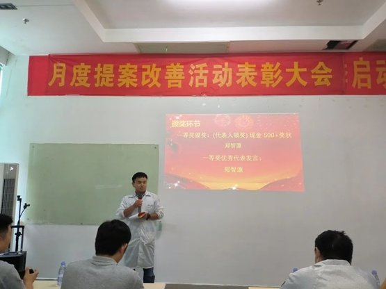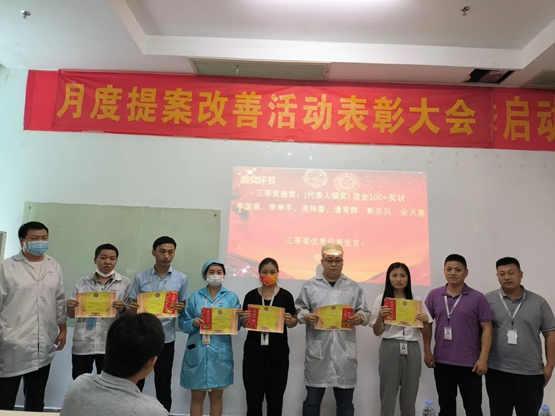 為表彰員工對公司發(fā)展提出優(yōu)秀提案,同時為充分調動員工主觀能動性,把提案改善作為持之以恒的工作來推進,讓更多的員工能夠參與進來,2022年6月21日,華南工廠召開了五月提案改善表彰大會。公司對本次提案獲得者頒發(fā)了榮譽證書和獎金。