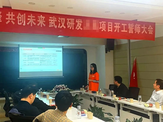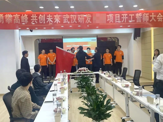 黃總與客戶代表向武漢研發(fā)團(tuán)隊(duì)授戰(zhàn)旗